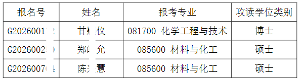 清华大学化学工程系 2026年招收港澳台地区研究生入围综合考核的名单已确定,现公布如下: