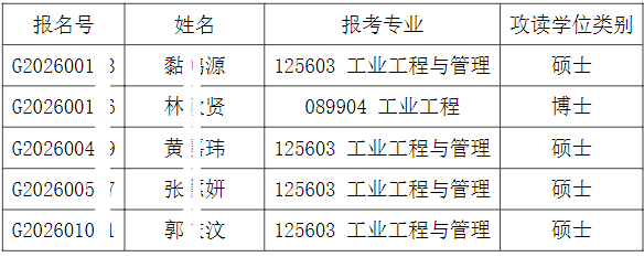 清华大学工业工程系2026年招收港澳台地区研究生入围综合考核的名单已确定,现公布如下: