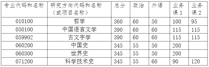 1、各专业(项目)入围复试分数线