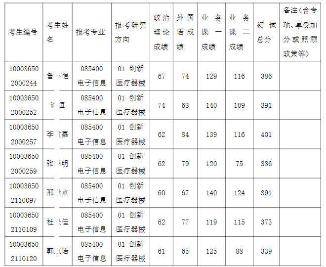清华大学生物医学工程学院2026年全国硕士研究生招生考试入围复试的名单已确定,现公布如下: