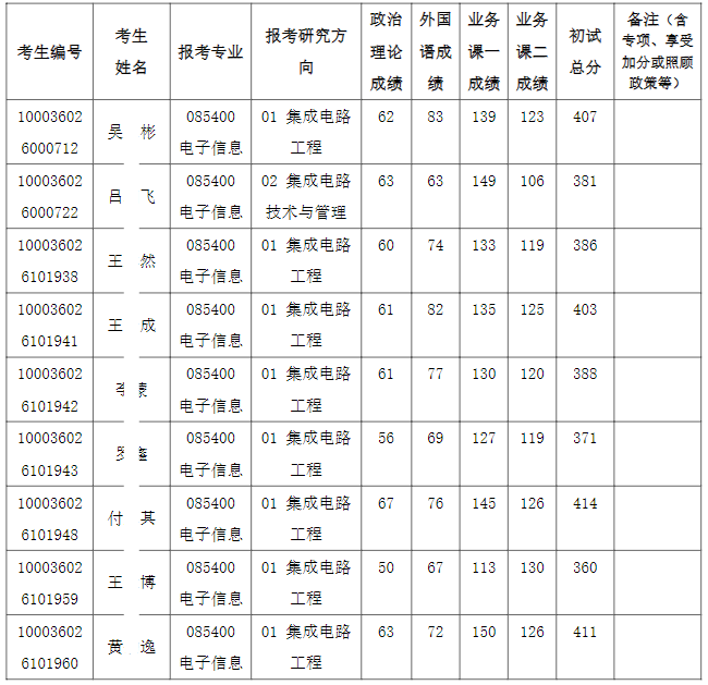 清华大学集成电路学院2026年全国硕士研究生招生考试入围复试的名单已确定,现公布如下: