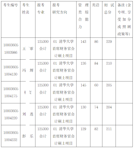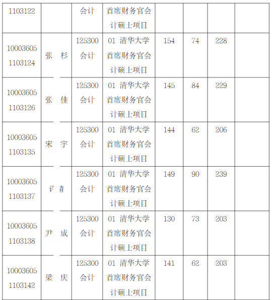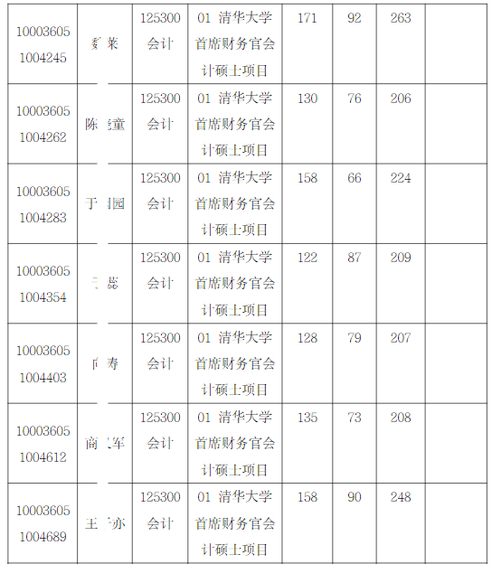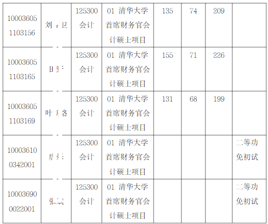 清华大学经济管理学院2026年全国硕士研究生招生考试首席财务官会计硕士项目入围复试的名单已确定,现公布如下:
