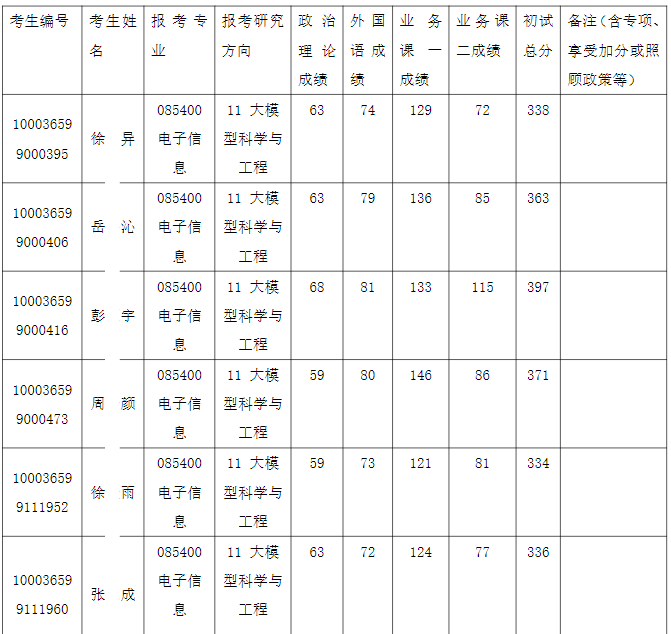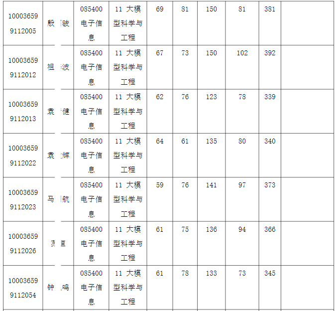 清华大学深圳国际研究生院2026年全国硕士研究生招生考试电子信息(大模型科学与工程)入围复试的名单已确定,现公布如下: