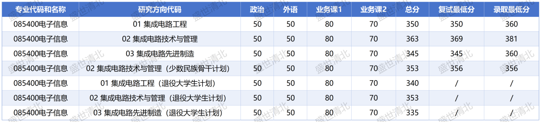 2026年清华大学集成电路学院电子信息专业各方向复试分数线如下: