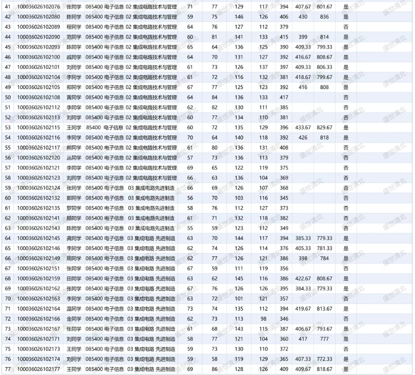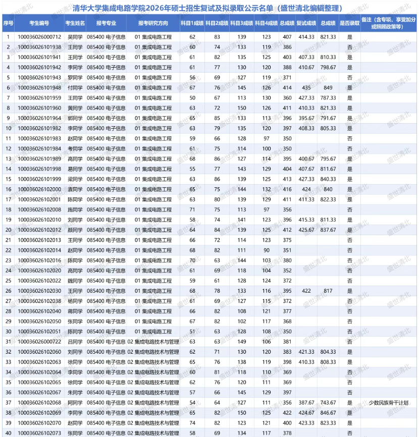 说明: 以上数据源自清华大学集成电路学院官网公布的复试分数线及拟录取名单,由盛世清北编辑整理。如有疏漏,欢迎指正。