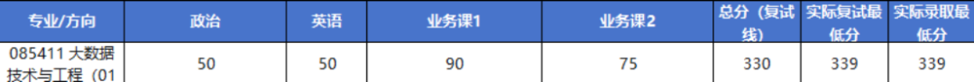 2026年大数据技术与工程项目复试分数线及实际录取最低分如下: