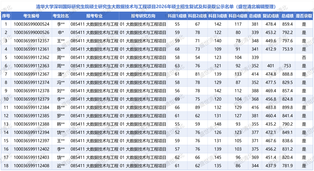 说明:以上数据源自清华大学深圳国际研究生院官网公布的复试分数线及拟录取名单,由盛世清北编辑整理。如有疏漏,欢迎指正。