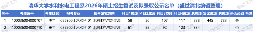 2026年清华大学水利系考研复试录取名单解读