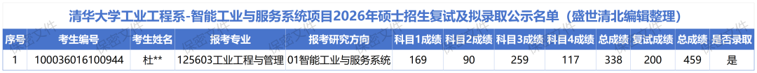 2026年清华大学工业工程系“智能工业与服务系统”方向硕士复试线258分,仅1人进入复试并成功录取。