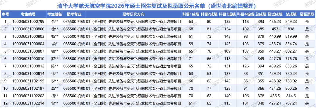 2026年清华大学航天航空学院机械专业硕士复试线330分,12人进入复试,12人全部录取。数据显示:初试过线是基础,复试达标才有机会上岸。