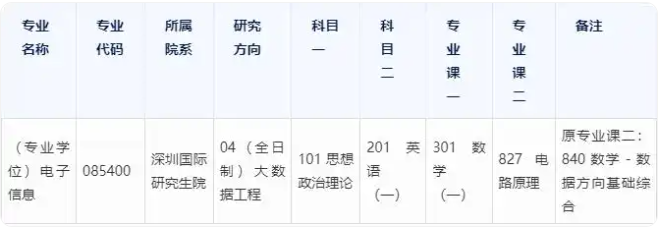 该专业名称为(专业学位)电子信息,专业代码 085400,隶属于深圳国际研究生院,研究方向为 04(全日制)大数据工程。考试科目设置如下: