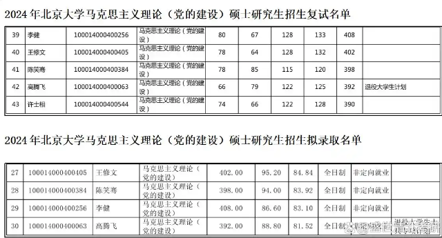 以上是关于【27考研|北京大学马克思主义理论(党的建设)考研复试录取名单解读】的内容,希望能帮助准备考研清北的同学们节约时间,提高上岸的成功率。