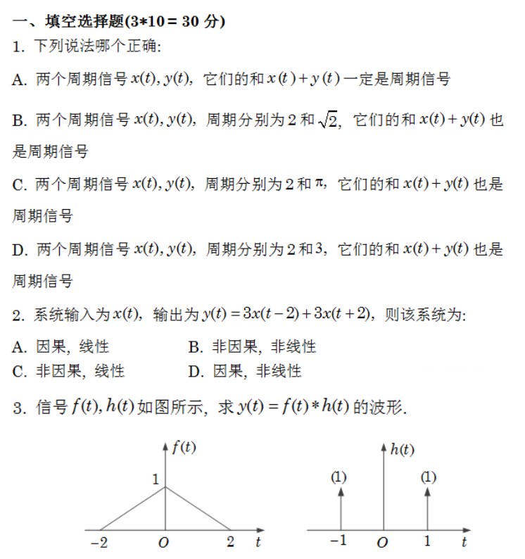 985 信号与系统 | 填空选择题 | 10道 | 30分 | 总分150分,考试时间180分钟 |