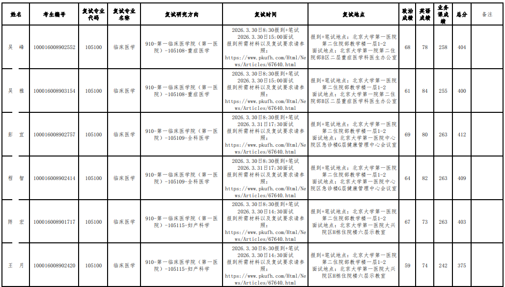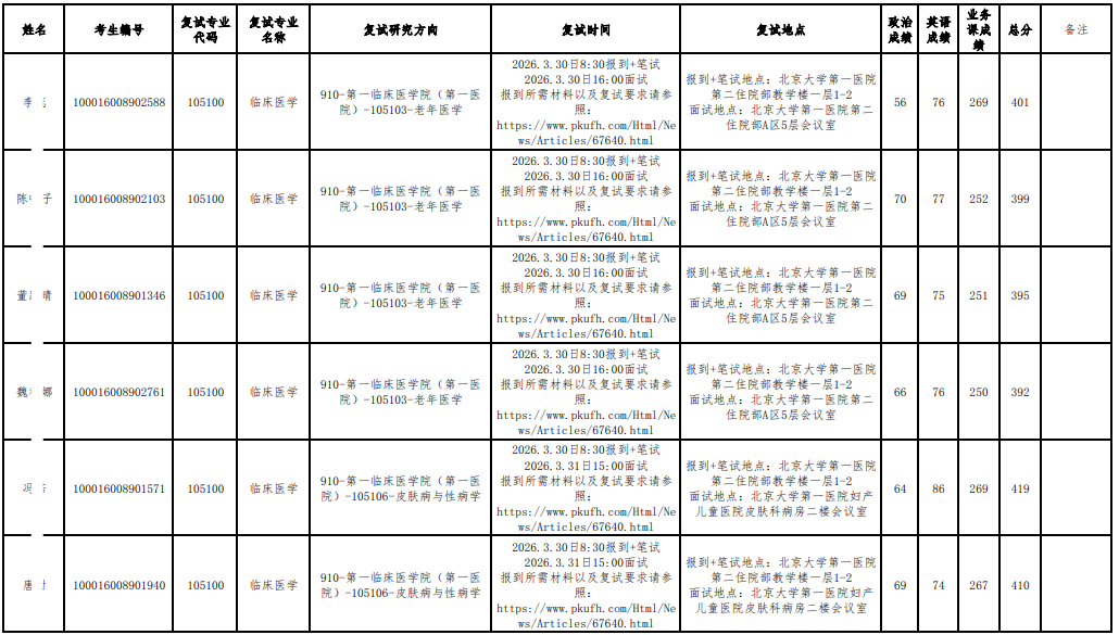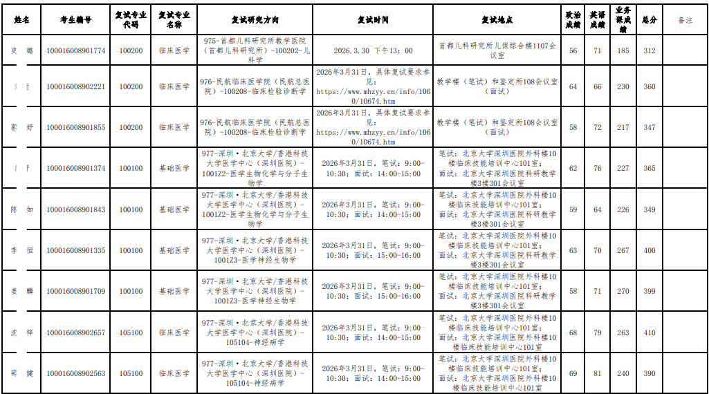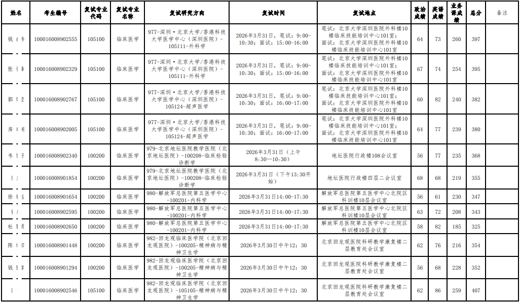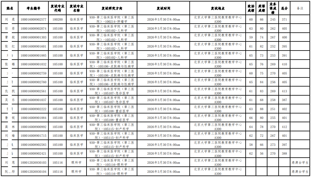 以上是关于【2026年北京大学医学部硕士研究生招生研究方向调整复试名单公示】的内容,希望能帮助准备考研清北的同学们节约时间,提高上岸的成功率。