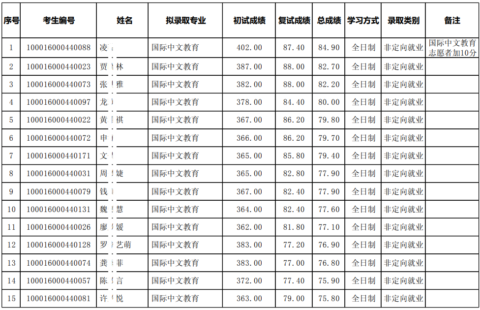 综合笔试面试情况,经北京大学研究生院审核,对外汉语教育学院2026年国际中文教育专业硕士招生拟录取名单如下。
