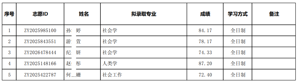 经北京大学研究生院审核,现将社会学系2026年港澳台学生攻读硕士学位拟录取名单公示。此名单自即日起公示7日。如有异议,请在公示期内实名书面形式提出。
