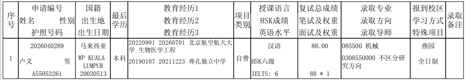 以上是关于【2026年北京大学力学与工程科学学院机械硕士研究生拟录取名单(留学生)】的内容,希望能帮助准备考研清北的同学们节约时间,提高上岸的成功率。