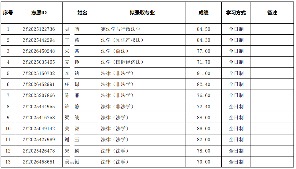 以上是关于【2026年北京大学法学院港澳台学生攻读硕士学位拟录取名单公示】的内容,希望能帮助准备考研清北的同学们节约时间,提高上岸的成功率。