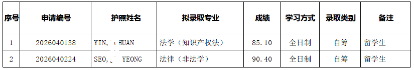 以上是关于【2026年北京大学法学院留学生攻读硕士学位拟录取名单公示】的内容,希望能帮助准备考研清北的同学们节约时间,提高上岸的成功率。