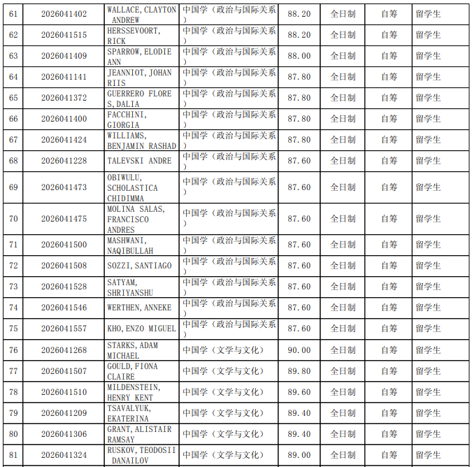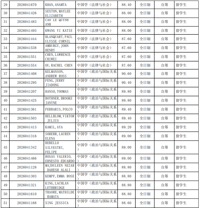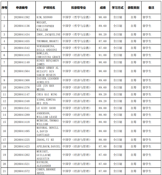 以上是关于【2026年北京大学燕京学堂留学生攻读硕士学位拟录取名单】的内容,希望能帮助准备考研清北的同学们节约时间,提高上岸的成功率。
