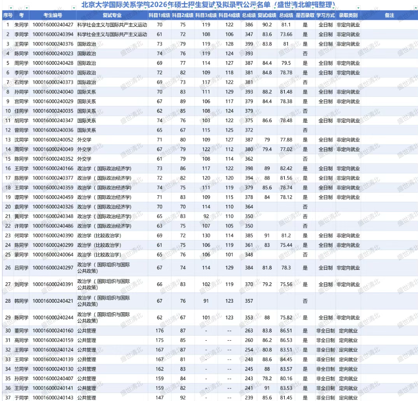2026年北大国际关系学院复试录取数据清晰地告诉我们:初试定资格,复试定结果。科学社会主义与国际共产主义运动347分压线上岸,政治学(国际政治经济学)350分遗憾落榜——初试权重70%的背景下,复试30%的权重依然可以改变命运。初试每一分都重要,但复试才是真正的“分水岭”。