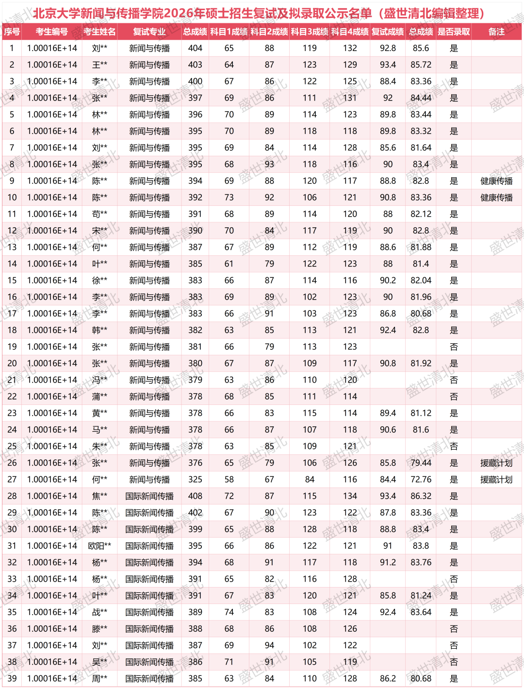 注:以上数据基于北京大学新闻与传播学院官方公布名单整理,由盛世清北团队进行简要点评,如有疏漏之处,敬请指出,仅供参考。