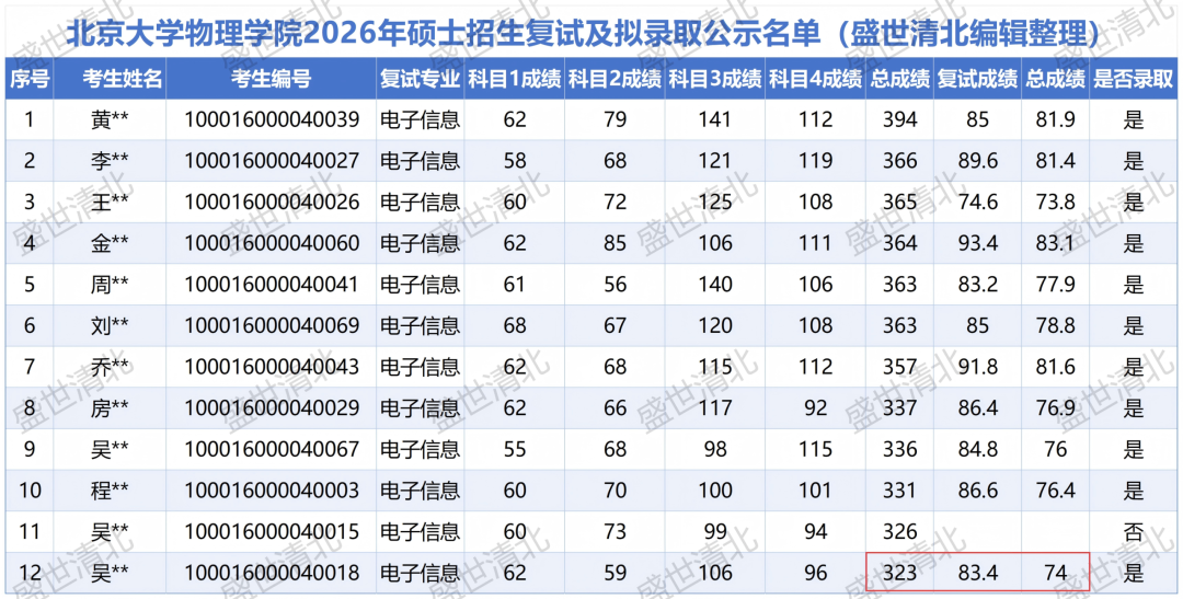 北京大学物理学院2026年硕士招生拟录取名单近日公布。在电子信息专业的激烈竞争中,初试394分高分领跑、初试第四复试逆袭总成绩第一、323分压线逆袭上岸等案例引发广泛关注。