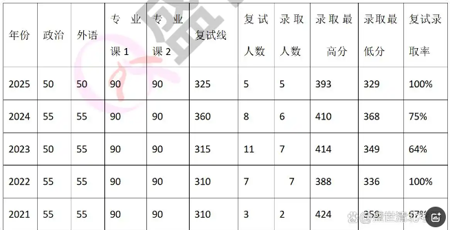 (3)录取人数2021年是2任,2022和2023均为7人,2024年是6人,2025年是5人,说明招生人数有所浮动,竞争较大,考生要抓住机会。