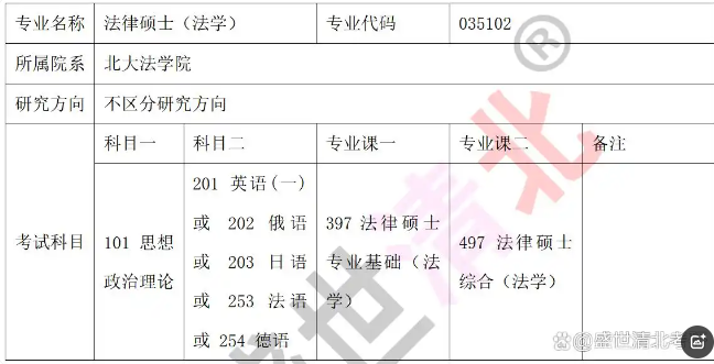 北京大学法律硕士(法学)专业(专业代码:035102)由北大法学院精心打造,不设具体研究方向,致力于通过系统化的培养模式,夯实学生的法学理论基础,并提升其实务操作能力。该专业考试共包含四门科目,总分为500分,具体安排如下: